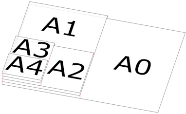 Een aantal papier-formaten in tabel vorm en in een schematische weergave van het verschil in grootte.