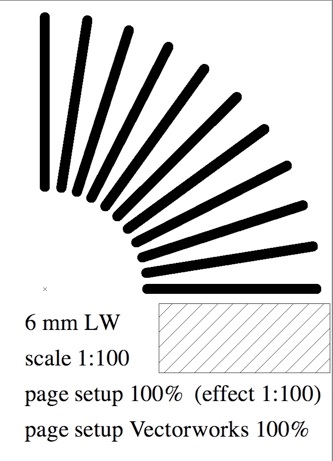 Het voordeel van de Print Scale functie is dat de output volledig verschaald wordt, inclusief lijndikten en Hatch tussen afstanden. Verwarrend is wel dat VectorWorks's eigen Print Scale functie dit niet op het scherm laat zien. Een voordeel van het VectorWorks Print Scale veld is dat het vanuit VectorScript kan worden aangestuurd, dus wellicht dat we daar in de toekomst nog iets mee gaan doen.