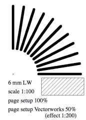 Wat ik erg elegant vindt is dat VectorWorks de Print scales op het scherm toont als een vergroting (of verkleining) van het papier, en dat de Layerscale duidelijk als een verkleining (danwel vergroting) van het model wordt getoond.